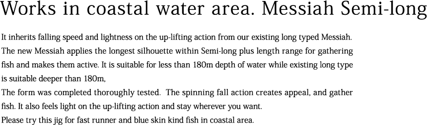 Please try this jig for fast runner and blue skin kind fish in coastal area. *Any type of fish.