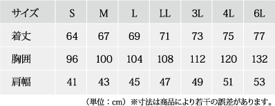 サイズ/S, M, L, LL, 3L, 4L, 6L